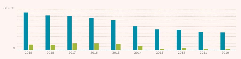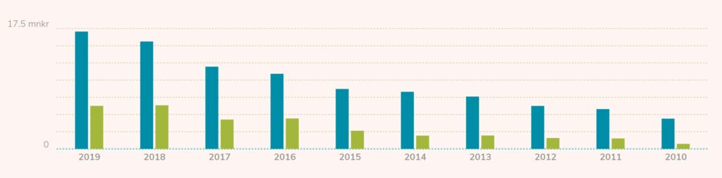 Idun växer både organiskt och genom förvärv. Under de senaste tio åren har Iduns nuvarande Gruppbolag vuxit omsättningen och EBITA organiskt med i genomsnitt fem procent per år. Sedan 2015, då Idun upprättade sin första koncernkonsolidering, har såväl omsättning som rörelseresultat (EBITA) uppvisat en genomsnittlig årlig tillväxt om ca 32 respektive 35 procent. Under räkenskapsåret som avslutades den 31 december 2020 genererade Koncernen en nettoomsättning om ca 680 MSEK med ett rörelseresultat (EBITA) om 81 MSEK och en rörelsemarginal om 12,0 procent.